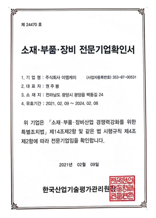 소재부품장비-전문기업확인서